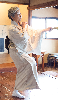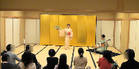 総集編の今回は今までのテーマであった姿勢、立ち座り・歩き方・呼吸などの基礎、視線、方向転換について簡単に実感して頂き、骨盤をたてる意味、肩甲骨を下げるメリットに加え、体の中心から動く、力を抜いて神経を入れる感覚や意義について実感していただきました。ほんの少し意識を変えることで無理そうに思えることが出来ることに、驚きの声や感動の声が湧きあがりました。 最後に、肩甲骨で腕を動かすコツを覚えてから「御所のお庭」の冒頭部分を、それらの動きを生かして舞って頂きました。