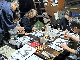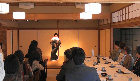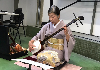 今回は、リピータの方と初めての方のグループに分れて、三絃(三味線)で「さくらさくら」の冒頭部分をお一人お一人に実際に弾いて頂きました。ほんの一節づつではありましたが、三味線を構える感覚などを体験していただきました。(約45分)