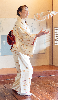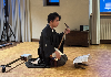 ミーコラス・ロメリス大学の特別講義では、まず、地唄舞の説明を軽く行い、どうして殆ど動かないのかについて絵画を用いて説明しました。そして「残月」を舞った後は舞は神に捧げるものだったことを説明して「松づくし」を舞いました。