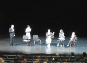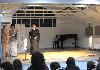 トークショーは、坂水昶之氏をストーリーテラーとして西洋のダンスと地唄舞との比較を「動と静」として説明し、日本の表現の特徴―表現しないことで表現以上のコミュニケ―ションをとろうとする事などを説明しました。通訳の岸田麻里亜さんが窮する程、外国語にするのが難しいレベルの内容に触れましたが、日本人の友人との会話や茶道の例をあげるなど、かなり分り易かったと思います。