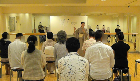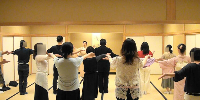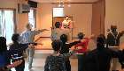 総集編の今回は今までのテーマであった姿勢、立ち座り・歩き方・呼吸などの基礎、視線、方向転換について簡単に実感して頂き、骨盤をたてる意味、肩甲骨を下げるメリットに加え、体の中心から動く、力を抜いて神経を入れる感覚や意義について実感していただきました。ほんの少し意識を変えることで無理そうに思えることが出来ることに、驚きの声や感動の声が湧きあがりました。 最後に、肩甲骨で腕を動かすコツを覚えてから「御所のお庭」の冒頭部分を、それらの動きを生かして舞って頂きました。