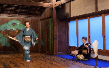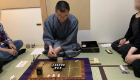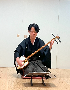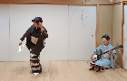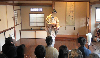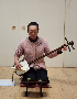 今回は、リピータの方と初めての方のグループに分れて、三絃(三味線)で「さくらさくら」の冒頭部分をお一人お一人に実際に弾いて頂きました。ほんの一節づつではありましたが、三味線を構える感覚などを体験していただきました。(約45分)